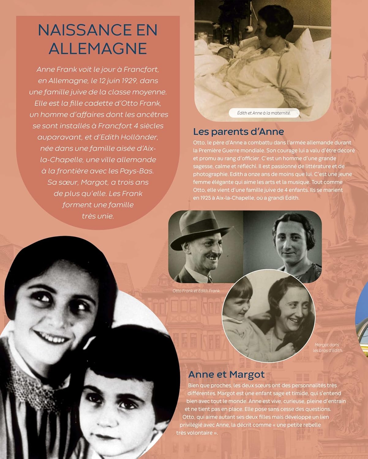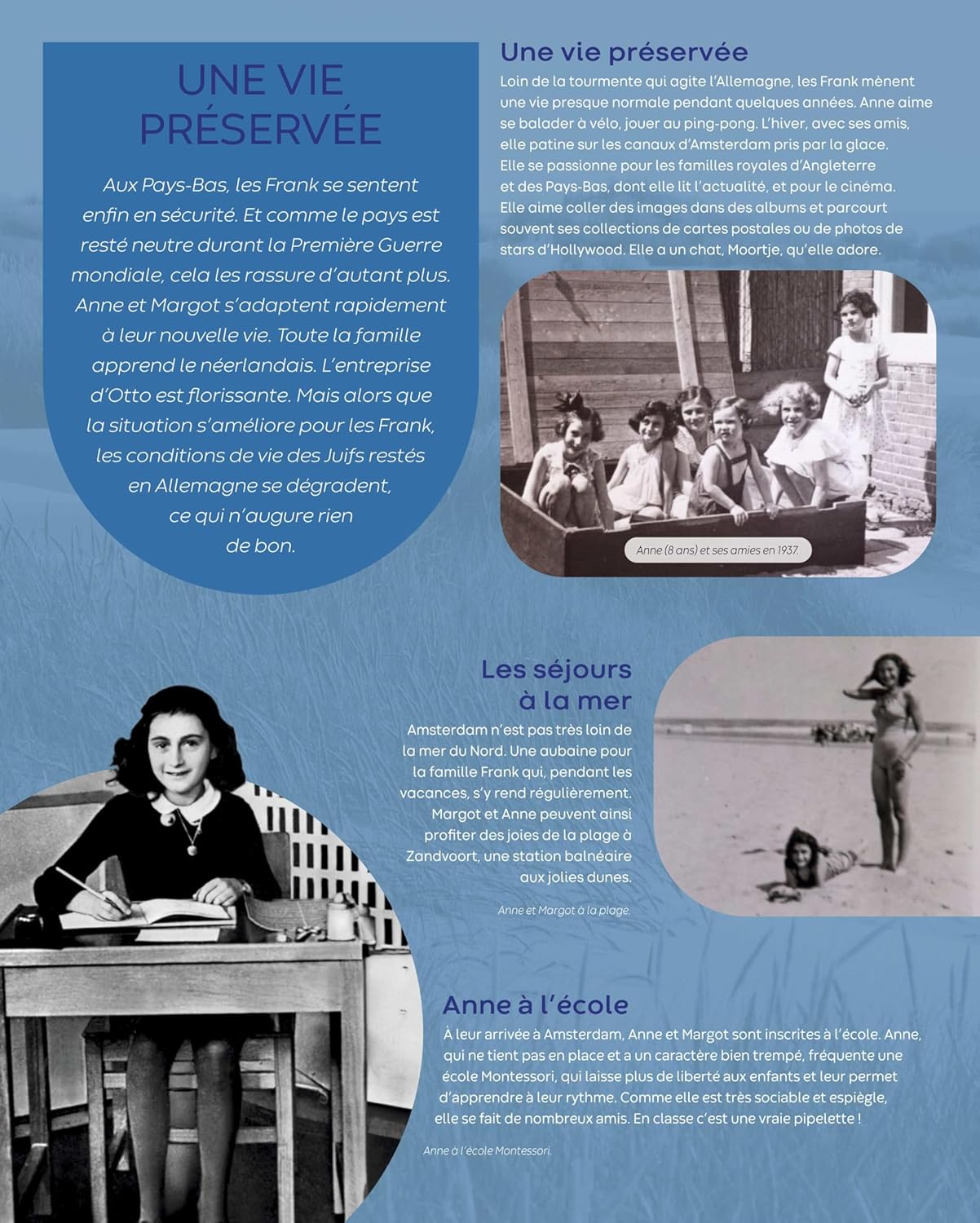 Un documentaire illustré présentant la vie d’Anne Frank : sa naissance en Allemagne, son exil à Amsterdam, la Seconde Guerre mondiale, sa famille, entre autres. Avec, en fin d’ouvrage, des images à découper.