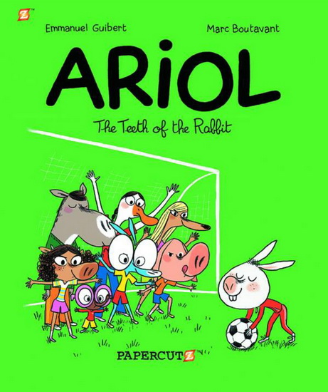 Bouncer, Ariol’s rabbit classmate, is the best one at sports (even if he wears a dental device). That’s just one typical detail you’ll discover in the latest all-new collection of twelve delicately delightful Ariol stories. Ariol, that cute little blue donkey with the big eye glasses, whose best friend is a pig, who is hopelessly in love with a cow, while a fly is equally head-over-heels in love with him (not that he cares). Ariol’s ever-expanding universe features many endearing characters that will remind you of your friends and (possibly) your enemies too. After all, Ariol’s just a donkey like you and me.