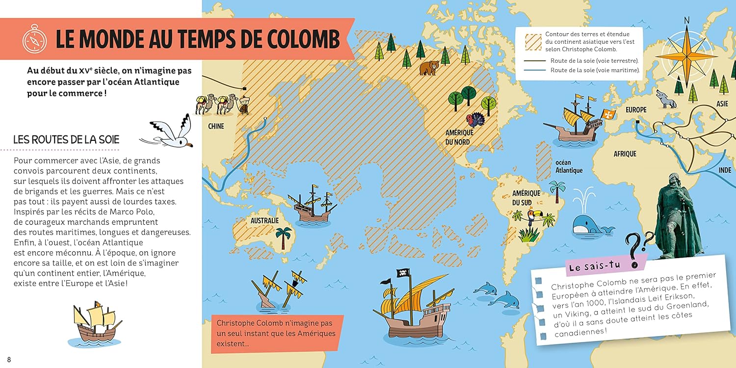 Une présentation du parcours de Christophe Colomb, de son enfance à Gênes à sa découverte de l’Amérique en 1492. Avec des quiz, des anecdotes, des chiffres-clés et deux frises chronologiques.