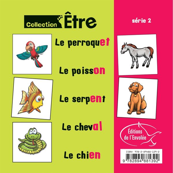 La collection Être est composée de dix livrets de lecture à caractère informatif et ludique. Grâce aux rimes, les jeunes lecteurs et lectrices peuvent s’amuser tout en développant leur conscience phonologique, élément essentiel à l’apprentissage de la lecture et de l’écriture.