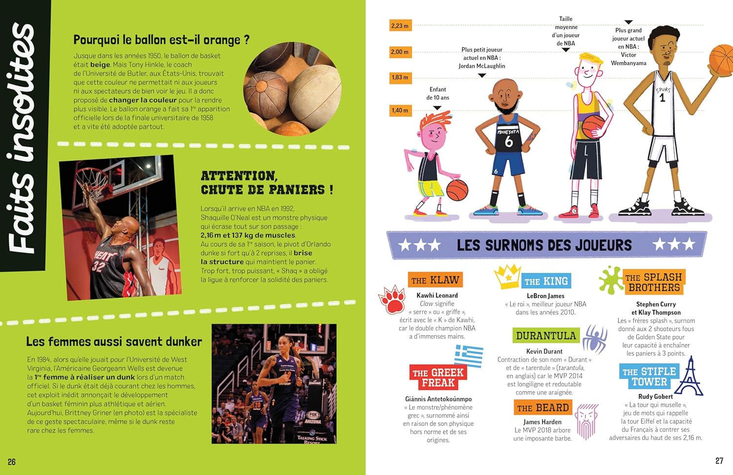 Une découverte du basket-ball à travers ses origines, ses règles, ses grandes compétitions, ses équipes mythiques, ses joueurs célèbres ou encore ses records. Des jeux et des quiz permettent de tester ses connaissances en s’amusant.