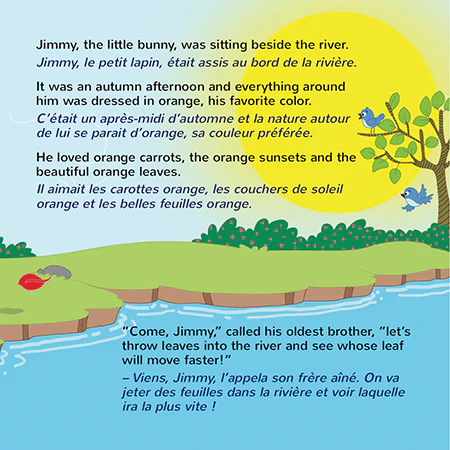 In this children’s book, Jimmy, the little bunny, explores autumn, his favorite season. He enjoys being outside and playing with colorful leaves.