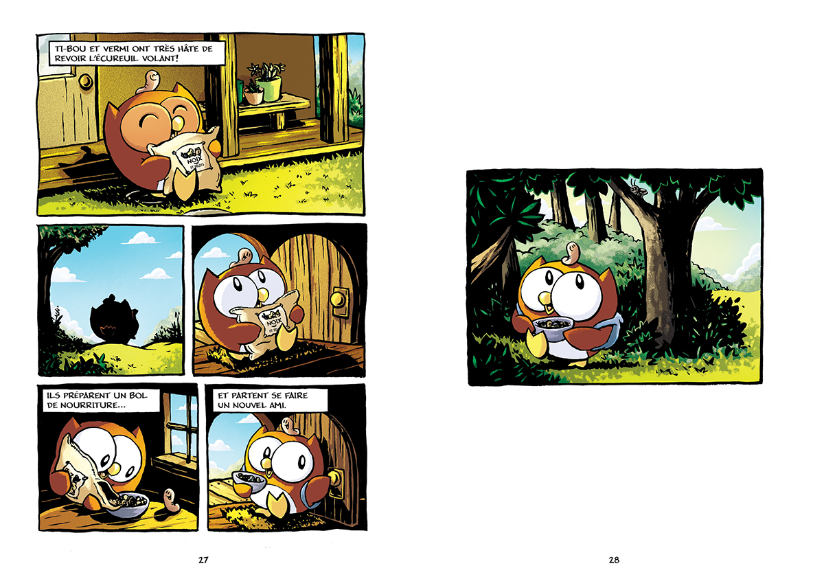Le hibou préféré des jeunes lecteurs est de retour dans une nouvelle aventure qui va vous emballer! Ti-Bou et Vermi remarquent un écureuil volant dans la forêt et décident de l’approcher. Mais cet écureuil a d’autres projets, et se lier d’amitié avec des créatures qui lui font peur n’en fait aucunement partie! Pendant ce temps, Ti-Bou fait face à ses propres peurs… Si seulement quelqu’un pouvait l’aider!