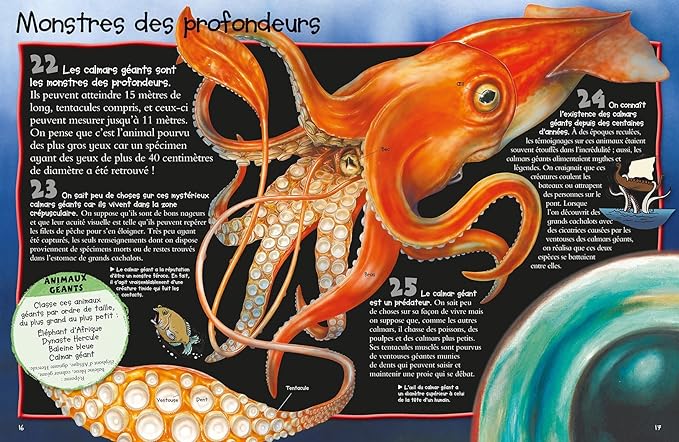 Cent faits numérotés pour découvrir les fonds marins : les créatures abyssales, les végétaux, entre autres. Avec des quiz et des activités.