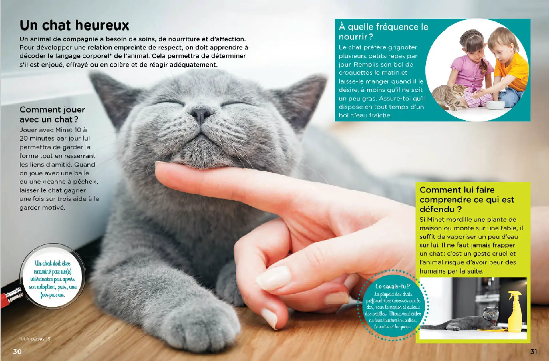 On y découvre leur histoire, leurs cousins sauvages, leurs particularités anatomiques et comportementales et, bien sûr, des portraits de chats parmi les races les plus populaires auprès des enfants.