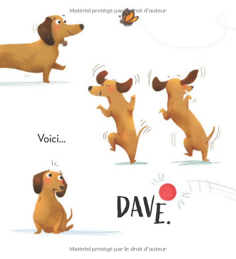 Dave le chien veut danser, mais les chiens sages du parc aboient de stupeur. Les chiens sages disent que Dave devrait s’en tenir à gruger les souliers de son maître, japper après le facteur, creuser de gros trous et pourchasser les chats.