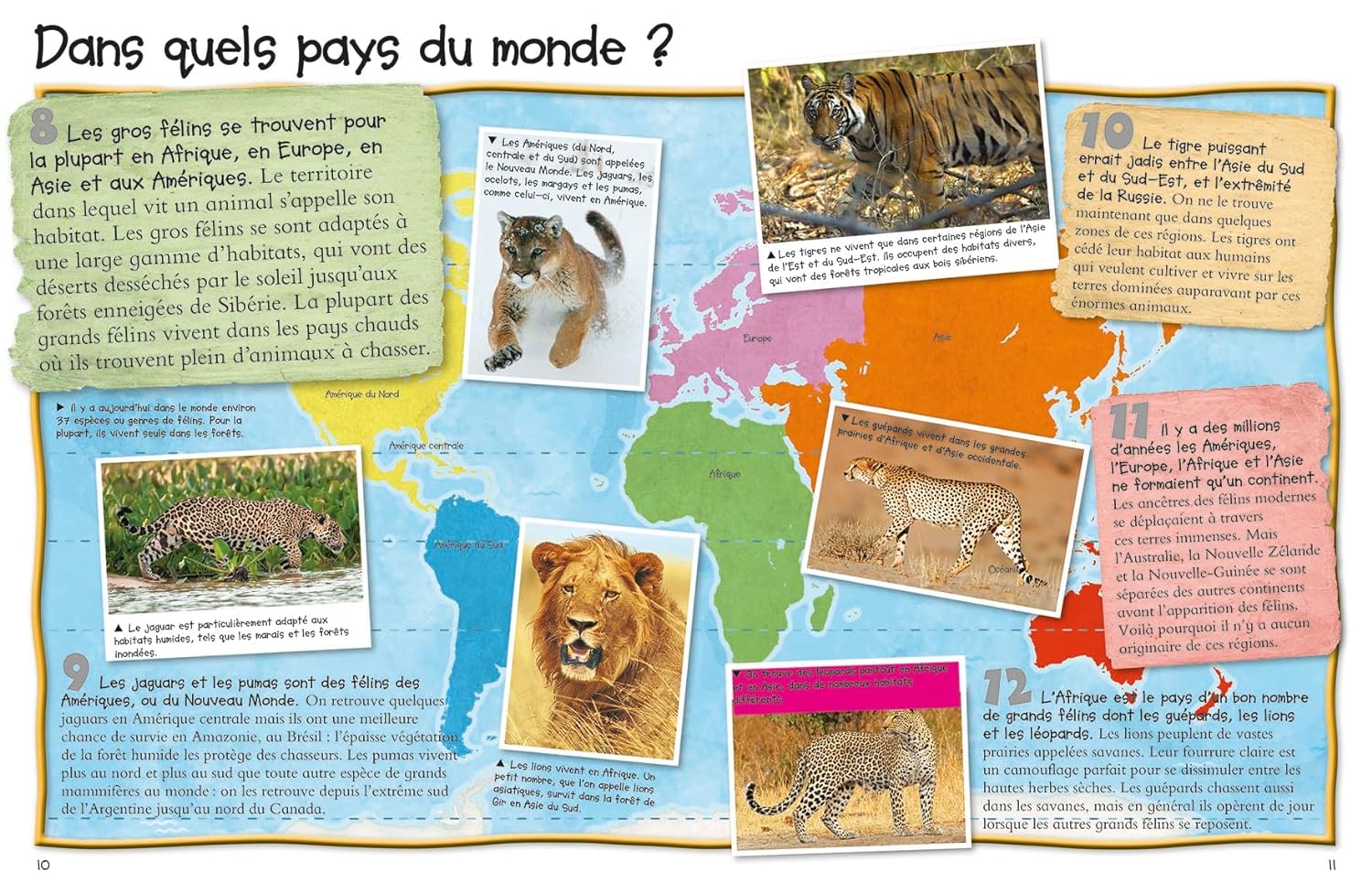 Cent informations numérotées pour découvrir le monde des félins, de la vie quotidienne d’une troupe de lions à la technique de chasse du guépard. Avec des quiz et des activités