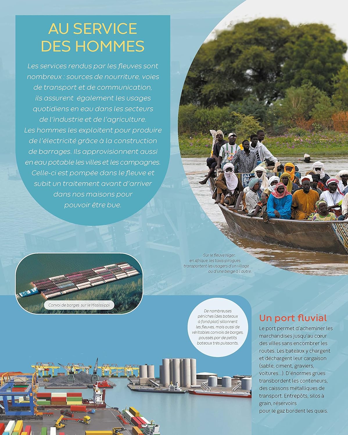 Un documentaire pour tout savoir sur les fleuves : leurs particularités, la vie sur le fleuve et sur les rives, l’utilisation de l’eau, la navigation, la pêche ou encore les crues. L’ouvrage répertorie les sites exceptionnels dans le monde, la faune et la flore, les civilisations pour lesquelles les fleuves sont importants, entre autres. Avec des vignettes à découper à la fin du livre.