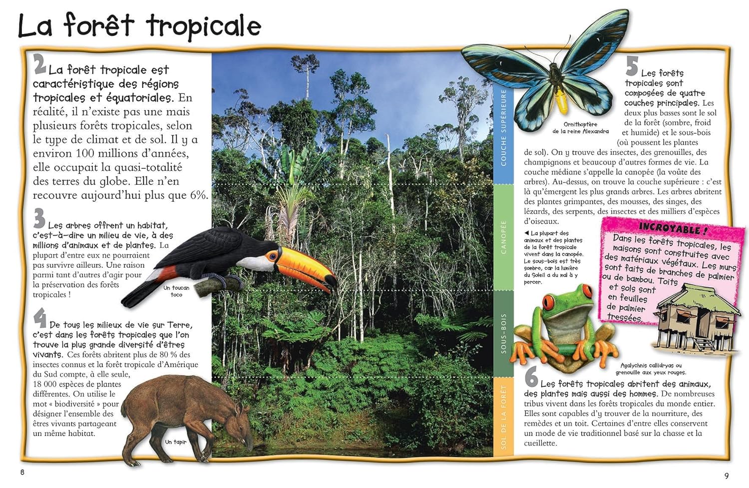 Cent faits illustrés pour découvrir la forêt tropicale. Avec des quiz et des activités.