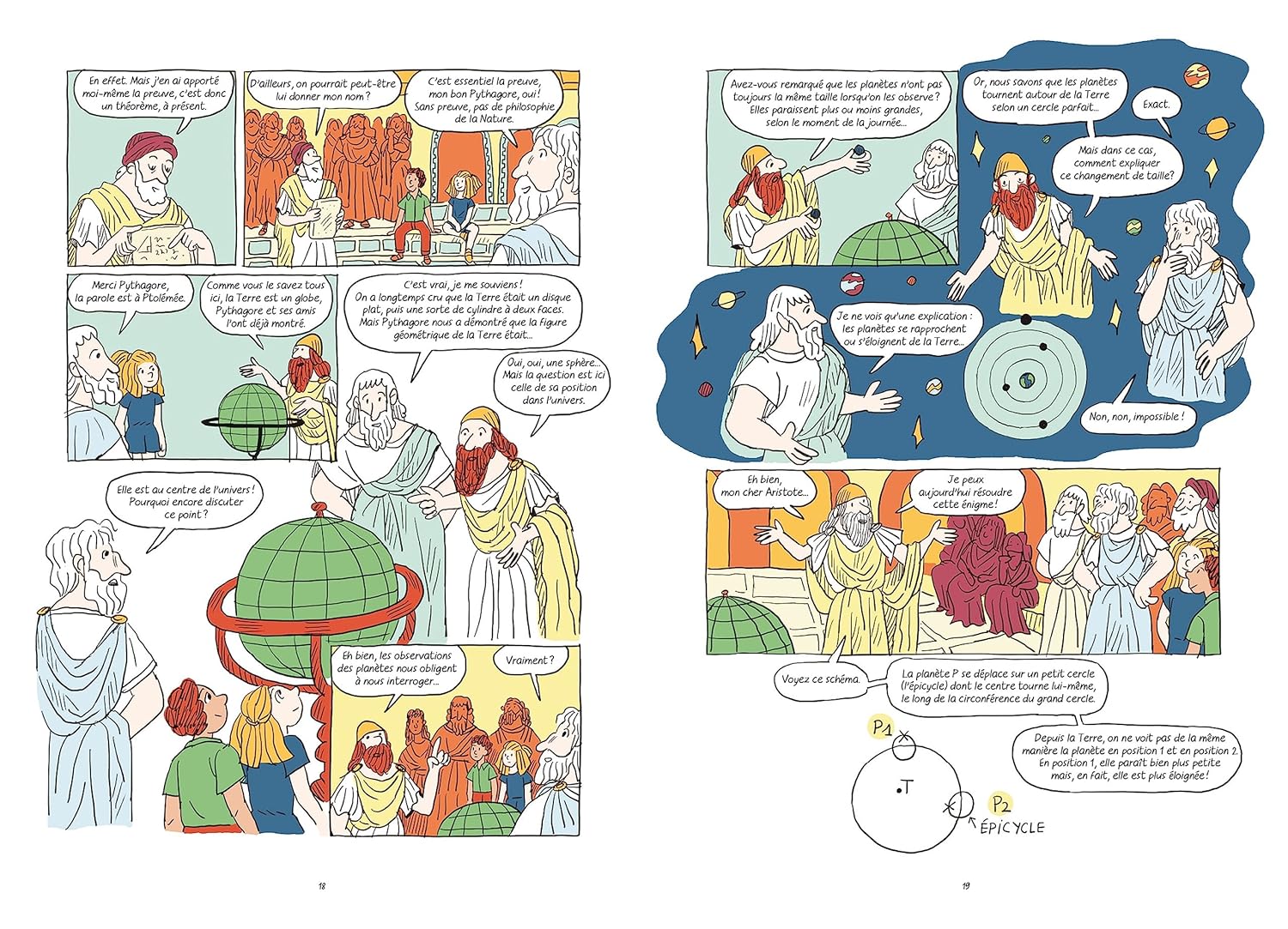Des premiers savants grecs aux dernières découvertes sur l’ADN, deux enfants d’aujourd’hui partent à la rencontre de ceux qui, un jour, se sont questionnés sur le monde et ses phénomènes : Pythagore, Aristote, les savants arabes du Moyen Age, Galilée, Darwin, Mendeleiev, Newton, Emilie du Châtelet, James Watt, Marie Curie et tant d’autres !