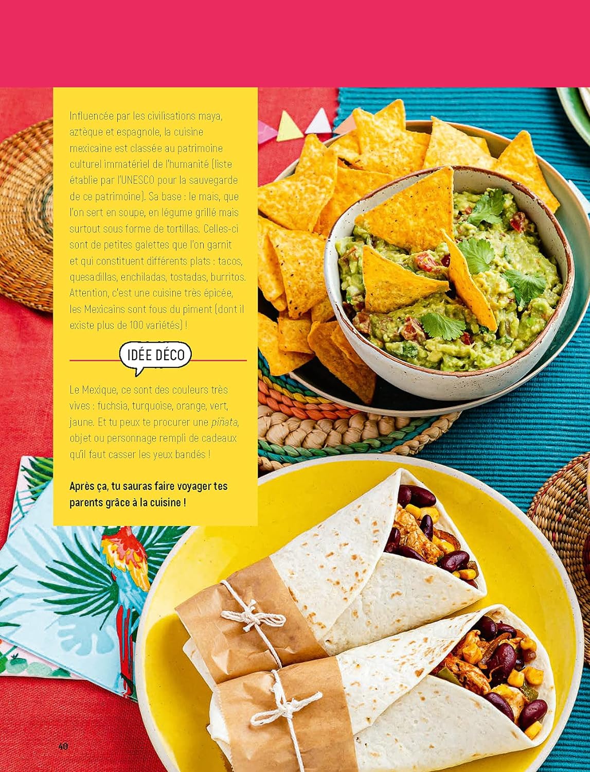 10 menus variés : un menu brunch, un menu végé, un menu spécial Halloween… et d’horizons différents : un menu japonais, un menu italien, un menu mexicain… à préparer comme un grand pour inviter et épater tes parents.