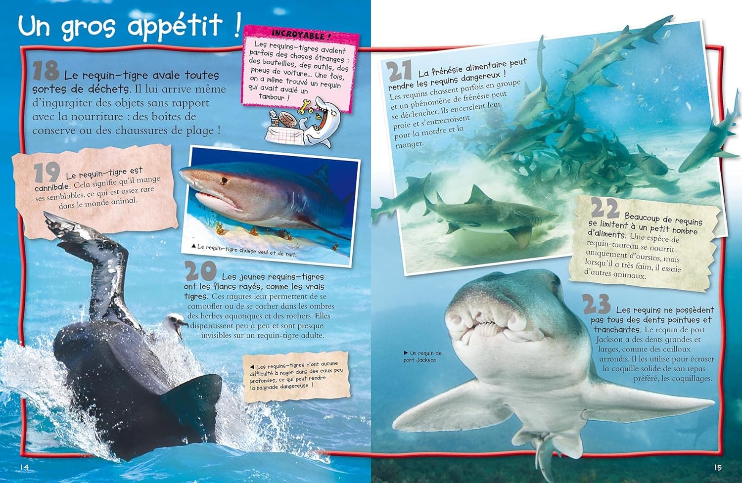 Cent faits numérotés concernant les requins, accompagnés de quiz et d’activités.