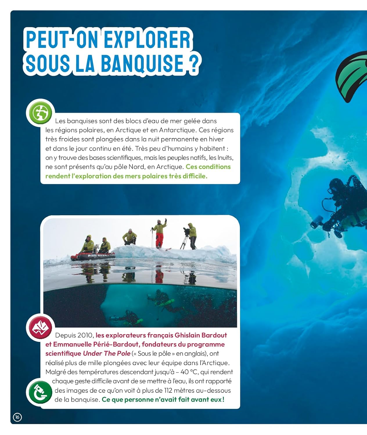 Un livre documentaire mêlant photos et illustrations réalistes pour tout savoir sur l’exploration sous-marine. Les océans sont un monde encore méconnu dont on n’a pas encore cartographié tous les fonds, ni découvert toutes les espèces !