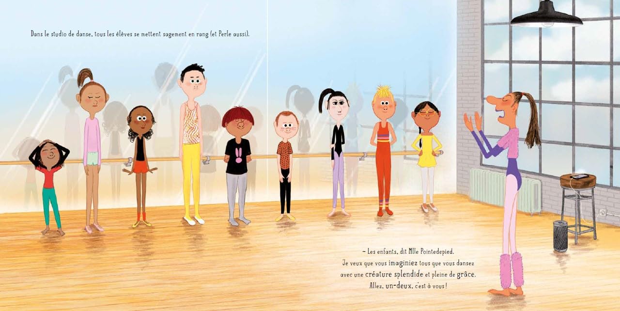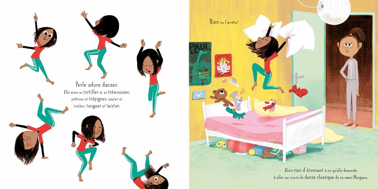 Perle adore danser.. Mais quand elle danse, ça fait : « Badam ! Boum ! Plof ! Bah ! » . Ça n’est pas du goût de tout le monde.. « On dirait que tu danses avec un dinosaure ! s’exclame sa professeure..