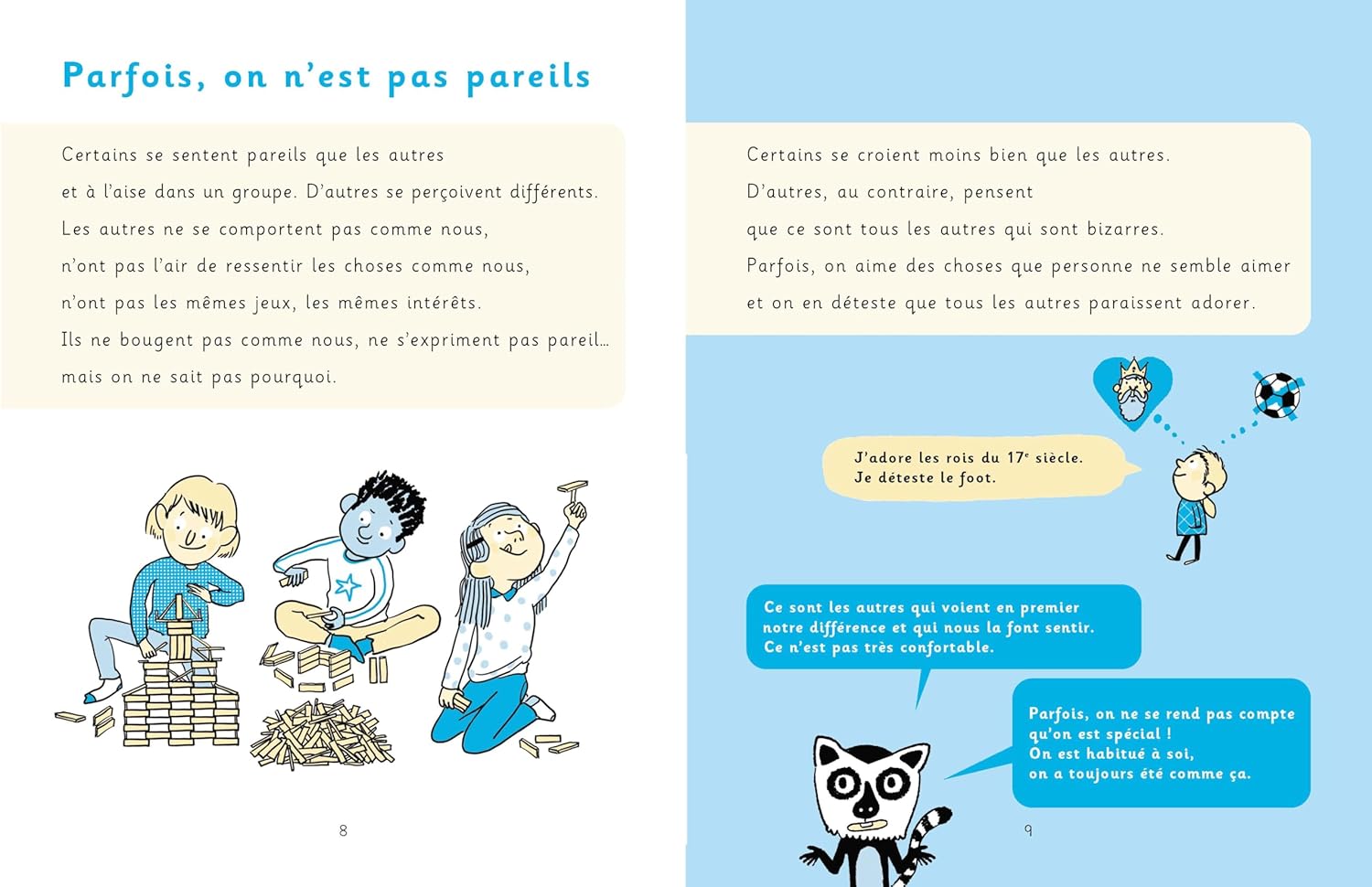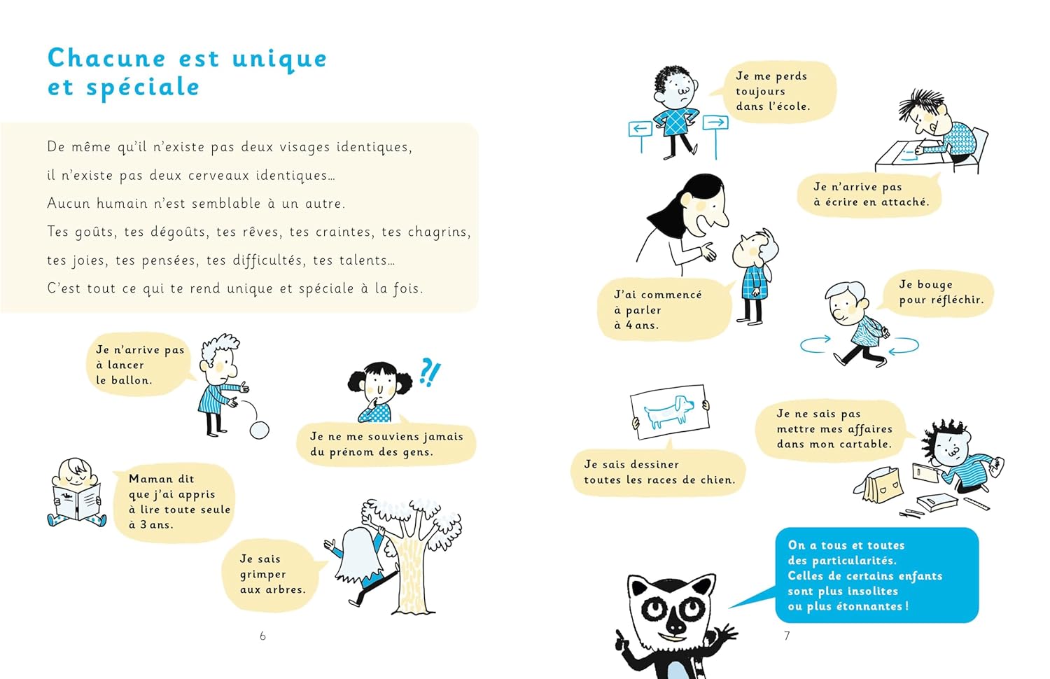 Nous sommes tous uniques, personne n’est tout à fait pareil aux autres. Mais certains enfants ont tellement de particularités, que les autres ont du mal à les comprendre et à les accepter.. Alors, dans ce livre, nous allons te parler de ces différences pour mieux nous entendre, mieux vivre ensemble et être tous plus heureux..