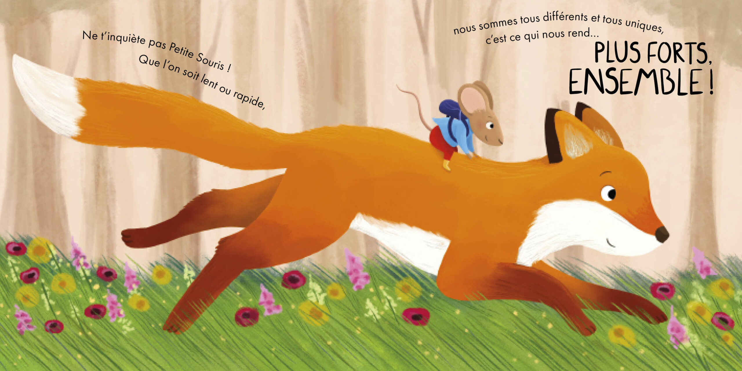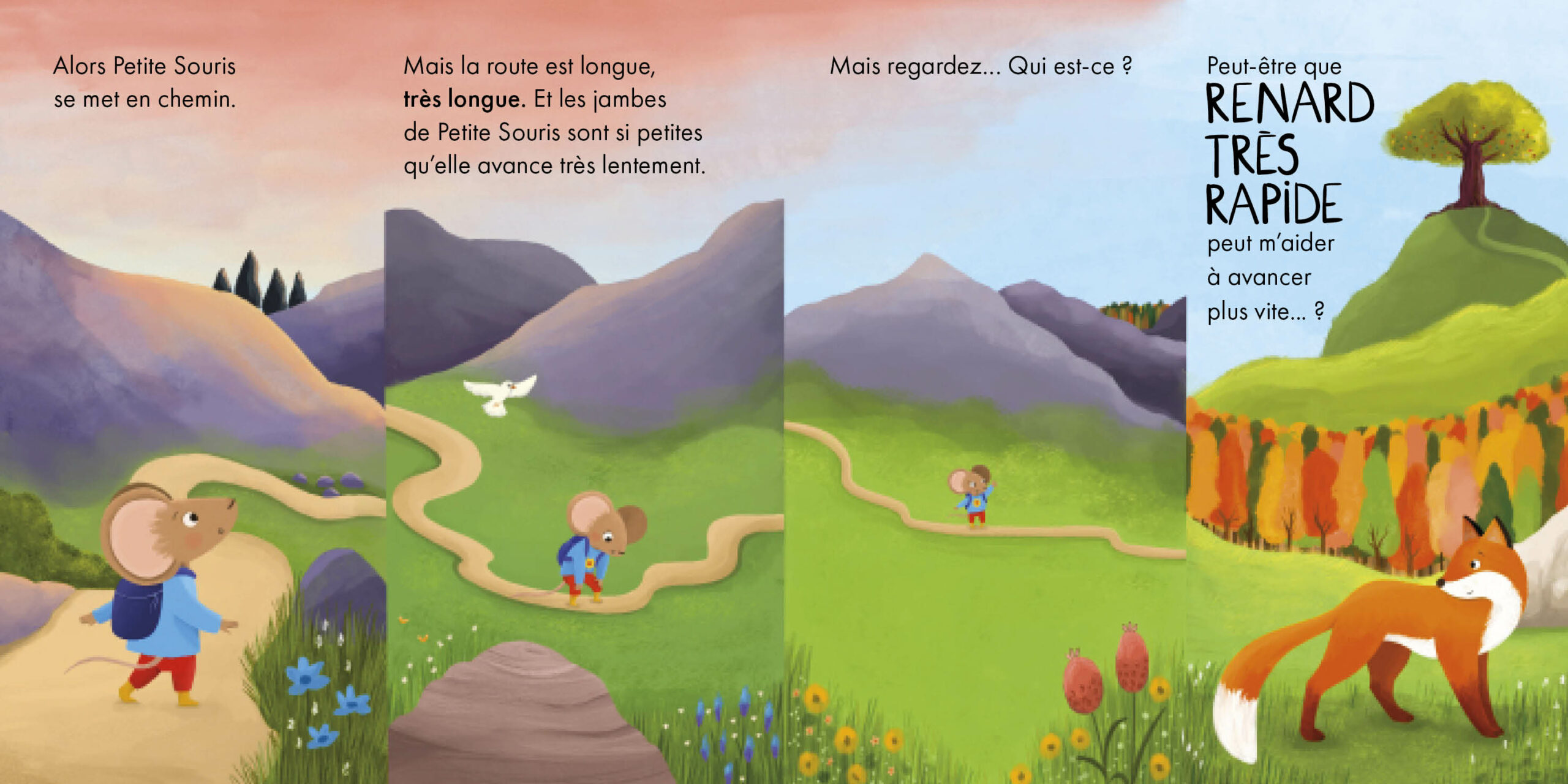 Petite Souris voudrait goûter les fruits les plus savoureux de l’arbre mais elle est trop petite pour les atteindre toute seule. Elle demande de l’aide à ses amis.