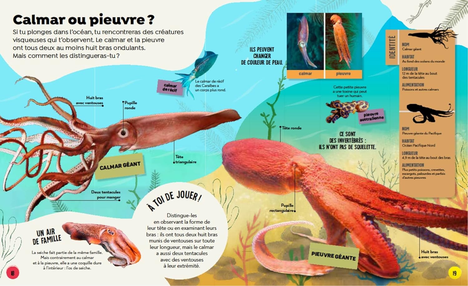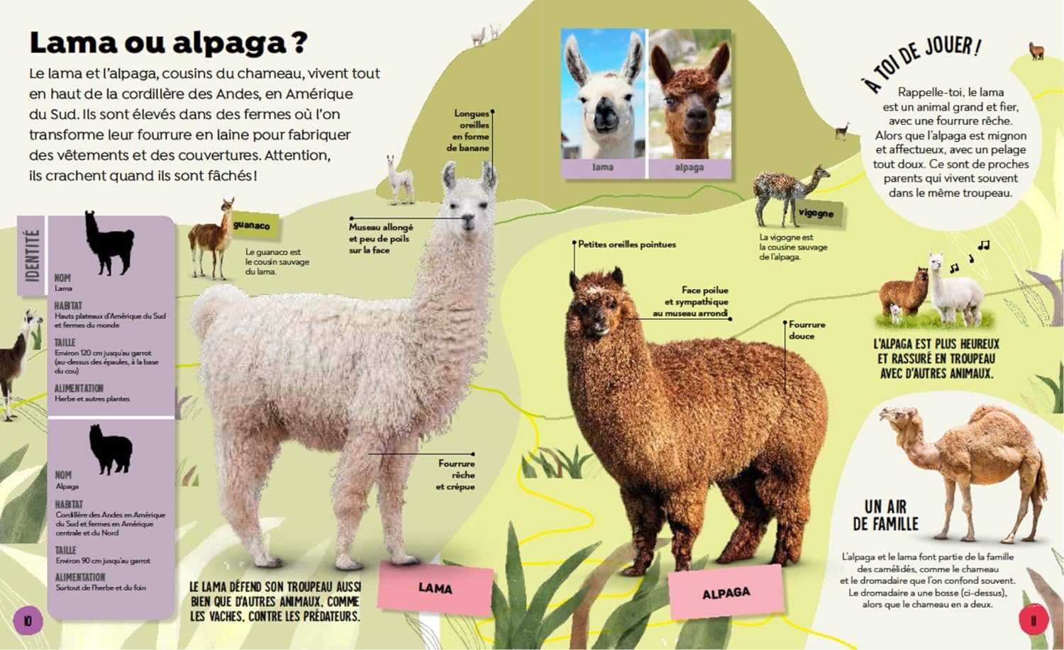 Des questions-réponses illustrées pour découvrir des informations insolites sur plus de cinquante animaux et des astuces pour ne plus confondre le crocodile et l’alligator, le lama et l’alpaga, l’abeille et la guêpe ou encore le lapin et le lièvre.