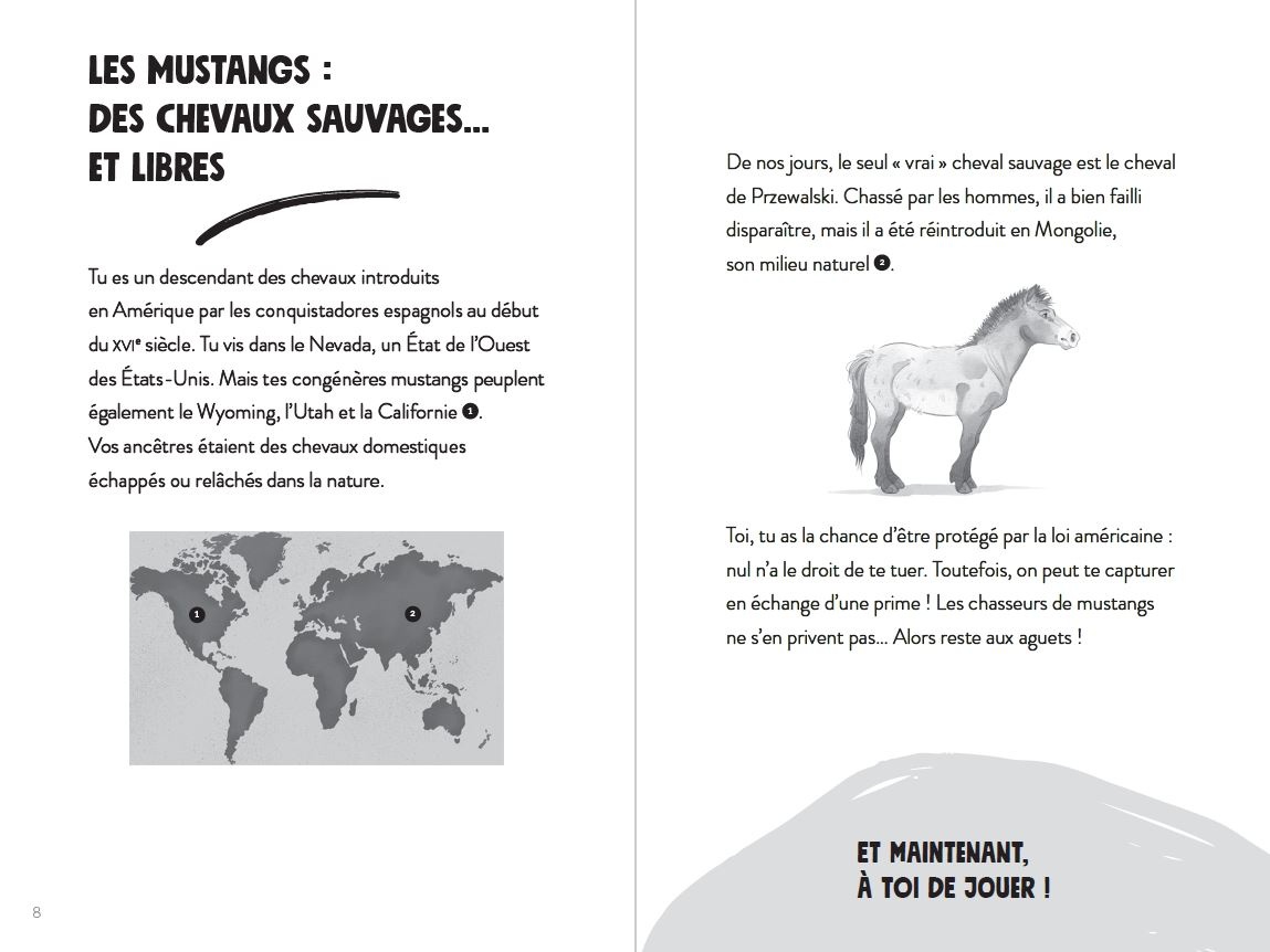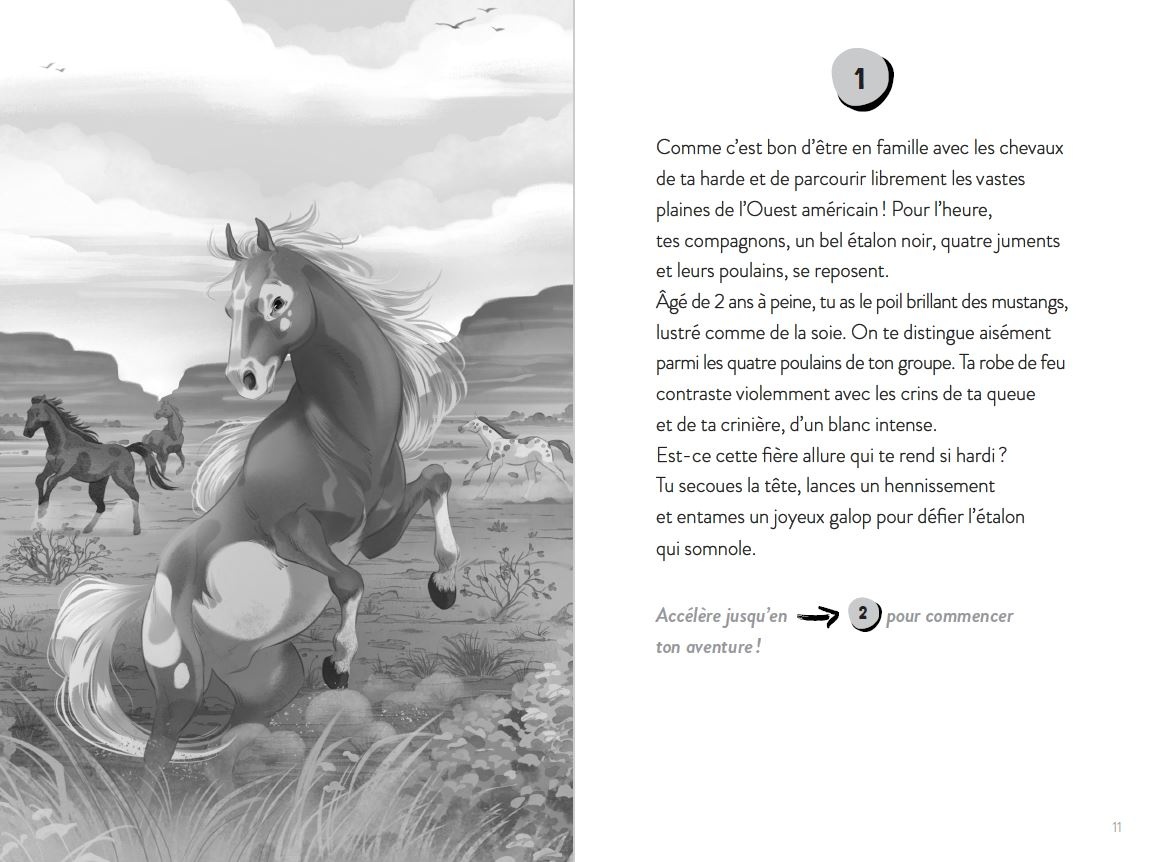Tu es un jeune mustang et tu galopes librement dans l’Ouest américain. Au cours de ta vie, tu devras relever d’incroyables défis ! Si tu fais les bons choix, le plus intrépide des chevaux sauvages, ce sera toi ! Pourras-tu échapper aux chasseurs et aux bêtes sauvages ?