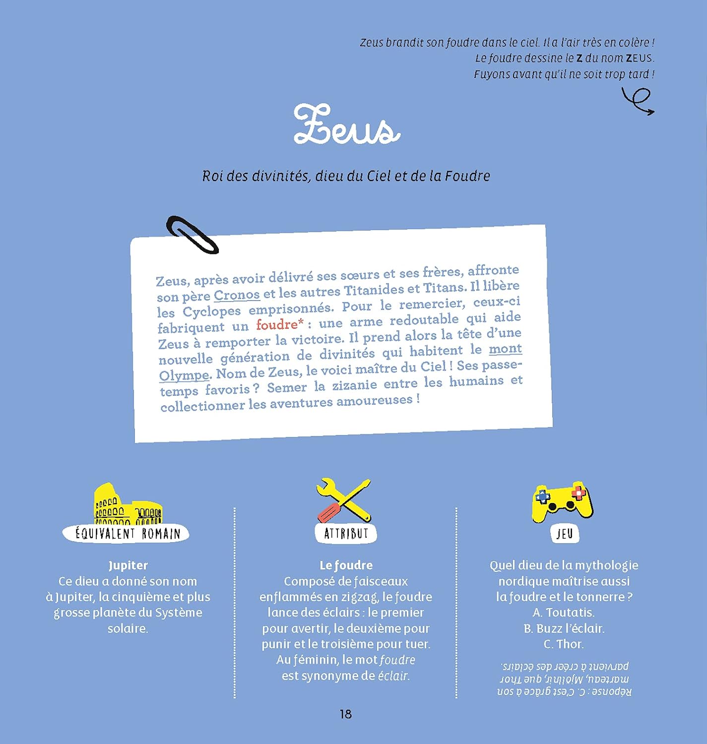 Soixante grands personnages mythologiques revus par la mnémographie. Chacun d’eux est associé à une astuce visuelle à la fois instructive, drôle et poétique ainsi qu’à des explications pédagogiques.