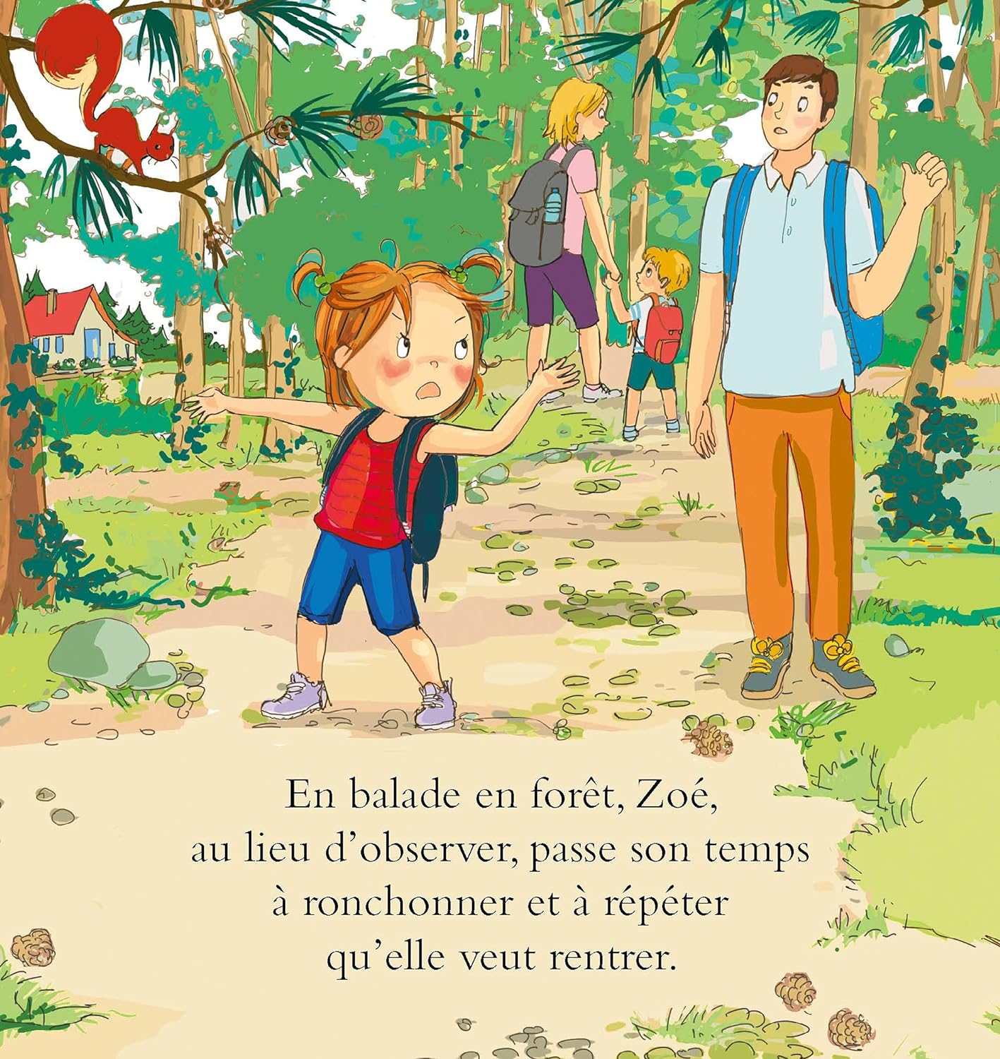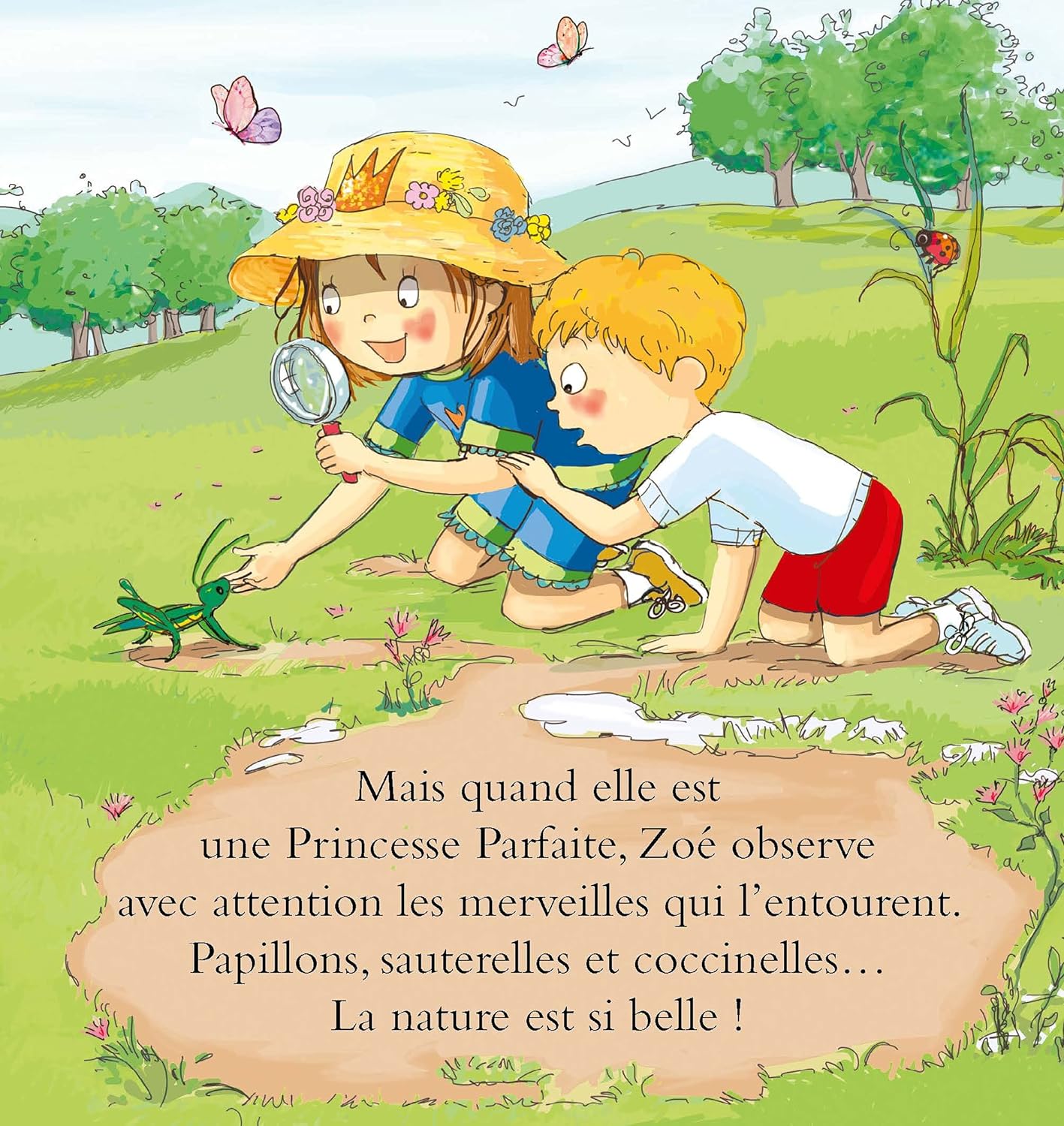 Zoé trouve que la terre est dégoûtante, que les plantes piquent et que le soleil est éblouissant, c’est pourquoi elle ne reste jamais dehors très longtemps. En devenant une princesse parfaite, elle prend goût aux promenades en forêt, à l’observation des animaux et au parfum des fleurs, mais surtout elle n’oublie pas de ramener tous ses déchets à la maison pour que la nature reste propre et belle.